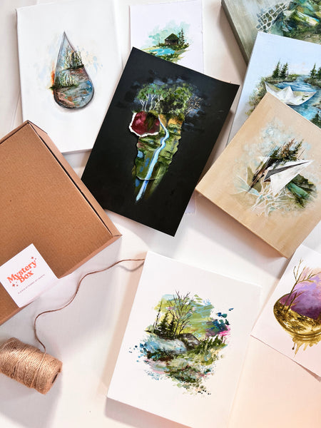Each Mystery Box reveals hidden pieces from Noura’s studio, small originals, sketches, and keepsakes made with love.